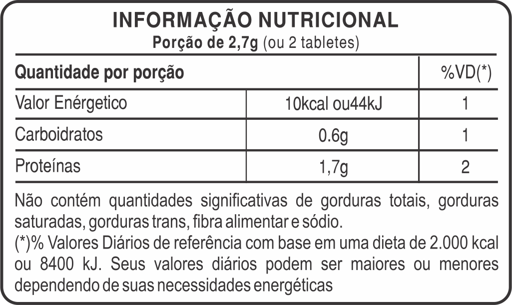 Consumir até 2 tabletes ao dia, entre as principais refeições.