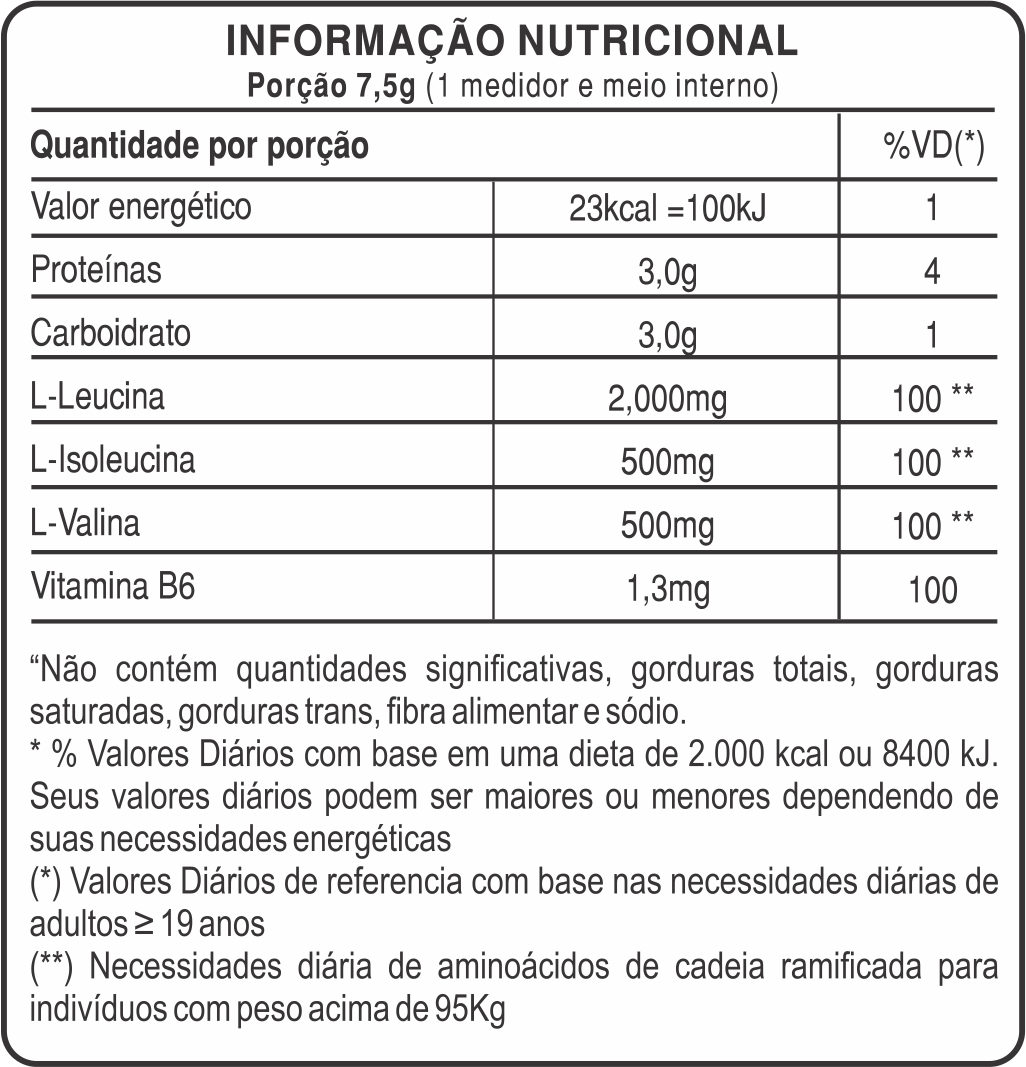 BCAA DRINK POWDER contém 3g de aminoácidos de cadeia ramificada na proporção de quatro vezes mais leucina, que é o principal para a função dos BCAA,s.