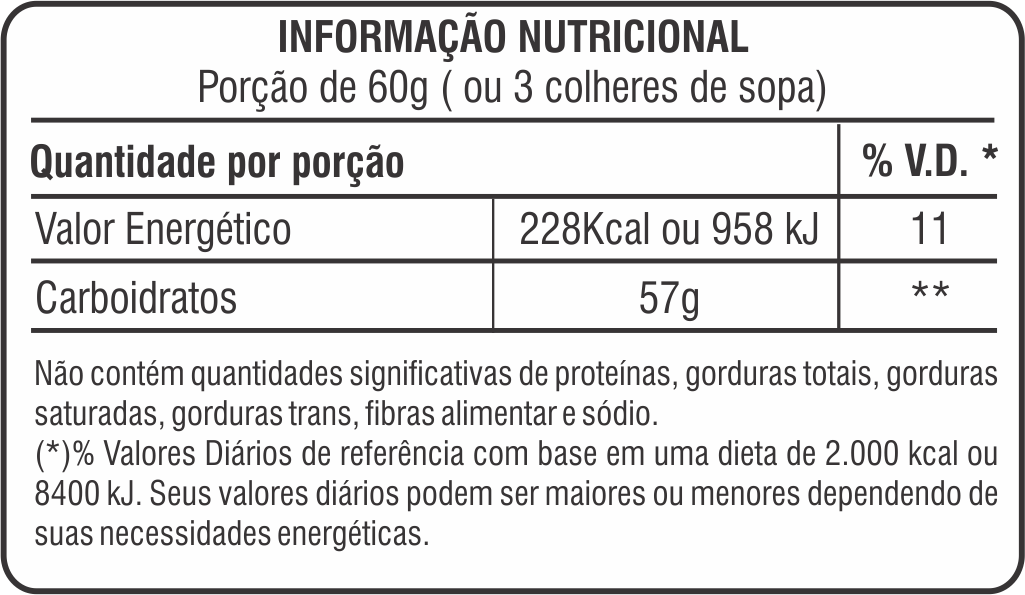 Formulado com dextrose, um carboidrato simples derivado da conversão enzimática do amido de milho, de rápida absorção, fornecendo energia imediata para melhorar a disposição e o desempenho durante o treino, além de promover a recuperação pós treino.
