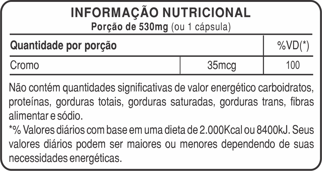 O cromo mineral é essencial para o organismo, responsável em potencializar os efeitos da insulina, contribuindo para redução dos níveis de gordura corporal além de proporcionar uma sensação de saciedade e diminuição do apetite por carboidratos e doces.