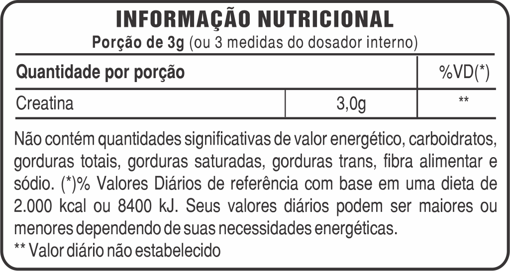 Elaborado exclusivamente com creatina mono hidratada de lenta absorção e a micronizada de absorção mais rápida, nessas duas formas Strong Creatine resulta em fonte de energia para a produção do trifosfato de adenosina, mais conhecido como ATP, que é o combustível usado para a as atividades de força e curta duração.