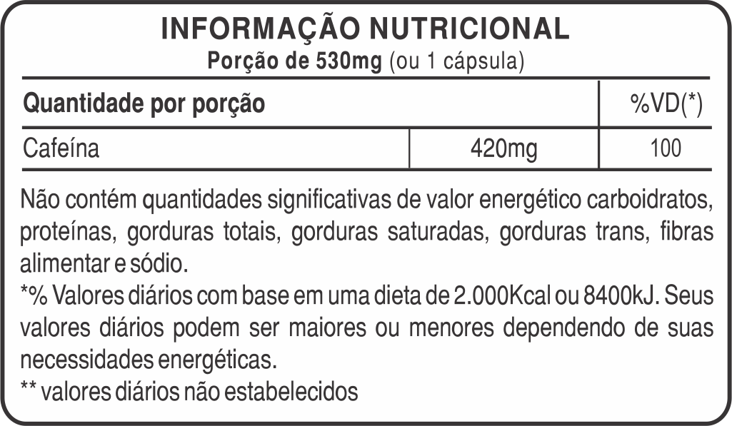 Consumir 1 cápsula ao dia, 30 minutos antes do treino.